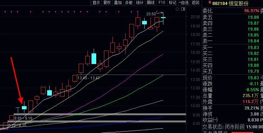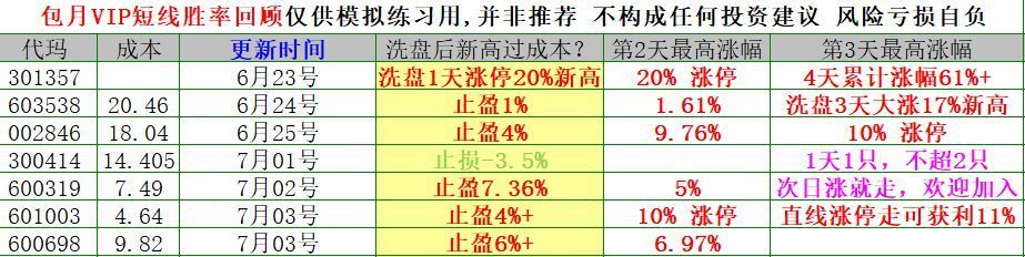 比如上面截图红色箭头参与做过的002104恒宝股份,10元启动已经翻翻20元新高了,他的特点就是延续10日线没有跌破一路上涨的,这类波段模式体现在002365永安药业,这个股也是12元附近做过的,那么观察看600113浙江东日是否能走出这类新波段的模式效果,而且20元做过的603538美诺华虽然也是波段走势但是没有上面的强,任何模式不会简单的历史重演,所以这类波段模式避免错过的方法就是潜伏后成本低,如果有涨利润可以走半留半,然后底仓看10日线没有跌破持股不动或是有空看盘的做反复高抛低吸即可。昨天的文章干货分享了如何避免买入就大跌和跌停的经验,每天分享不同的思路模式学习,关注我授人以渔,提高水平进步