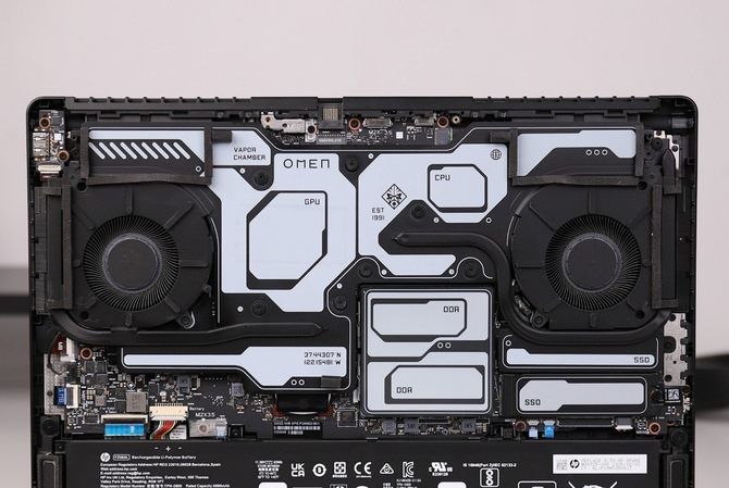 而除去这些内容,最影响游戏体验的,非全新酷凉风暴MAX散热技术莫属。全新模具的暗影精灵MAX采用了双风扇、双热管加上大面积VC均热板的散热打法,散热效能大大提升,无论是内部还是表面温度都能控制得当;同时,在全新的酷凉混合液金硅脂导热材料作用下,相较传统导热材料,不仅让暗影精灵MAX的导热效能大大提升,还避免了液金高流动性可能带来的偏移与侧漏问题,让这套硬核的配置工作更加稳定高效。
