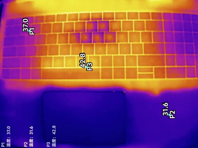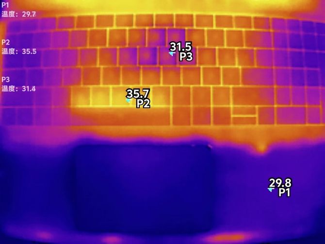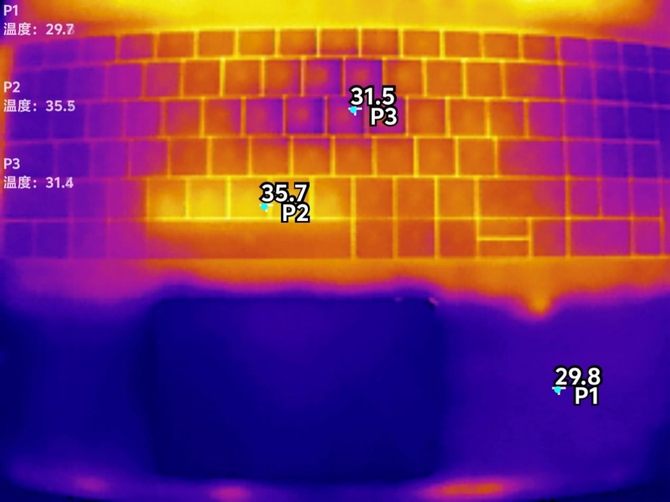 键盘温度也仅有40度,常用键位控制在36度左右,告别笔记本高强度游戏必须外接键盘的日子。