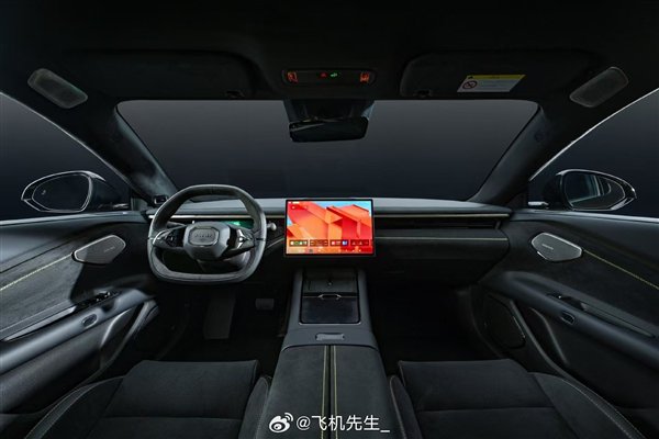 进入车内,其整体采用了新能源车常见的简约设计,拥有大平底造型的多功能方向盘,同时还配有长条状液晶仪表盘、大尺寸中控屏,预计也将提供HUD抬头显示。
