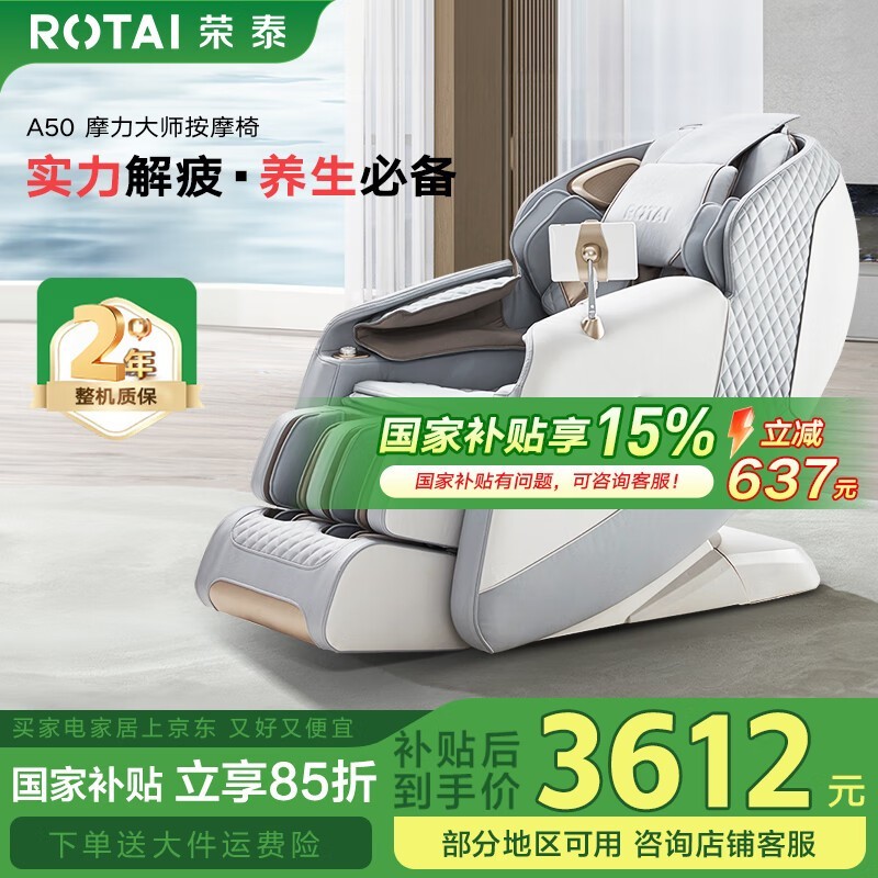荣泰A50按摩椅限时特惠,仅需3749元缓解疲劳