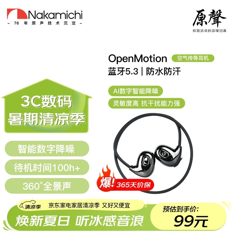 中道骨传导耳机运动挂脖超长续航蓝牙5.3