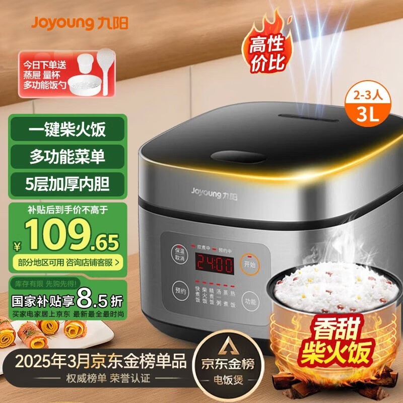 九阳F-30FZ630微压电饭煲3L京东活动价109元