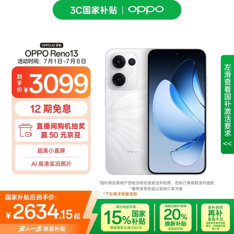OPPO Reno13 5G心动白手机,活动价2634元