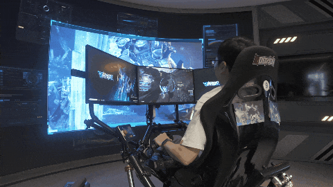 更别提在办公区旁边摆放的那台“机兵模拟器”:坐上座椅,推动操纵杆,游戏中的机兵就会喷射、冲刺或是转向,而置于液压杆上经过精心调教的座椅,也会和游戏同步调整角度,让人仿佛置身真正的高达驾驶舱。