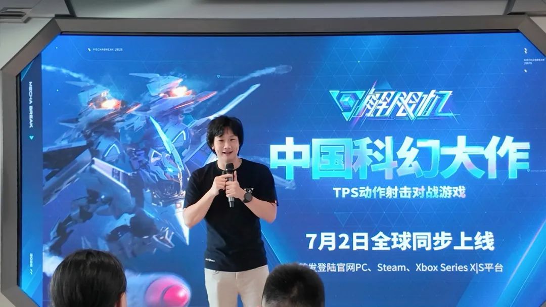 在我们出发的前一天,《解限机》制作人郭炜炜进行了一次近3小时的前瞻直播,作为游戏内容演示的一部分,制作人直接打开游戏,和开发团队进行了一个多小时的激情对战。有趣的是,在进入对战后,郭炜炜顿时没有了宣讲环节的紧张,兴奋得像个大孩子。
