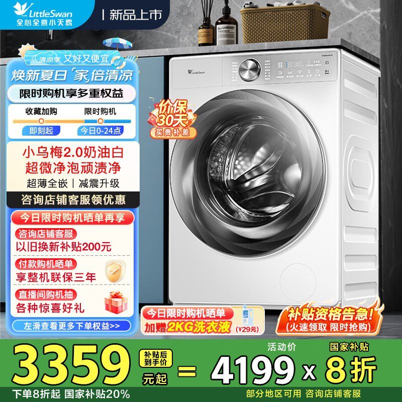 小天鹅小乌梅2.0洗衣机直降千元限时抢购