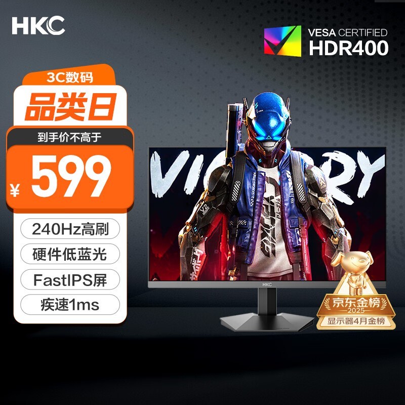 HKC猎鹰G24H3S电竞显示器240Hz高刷1ms响应