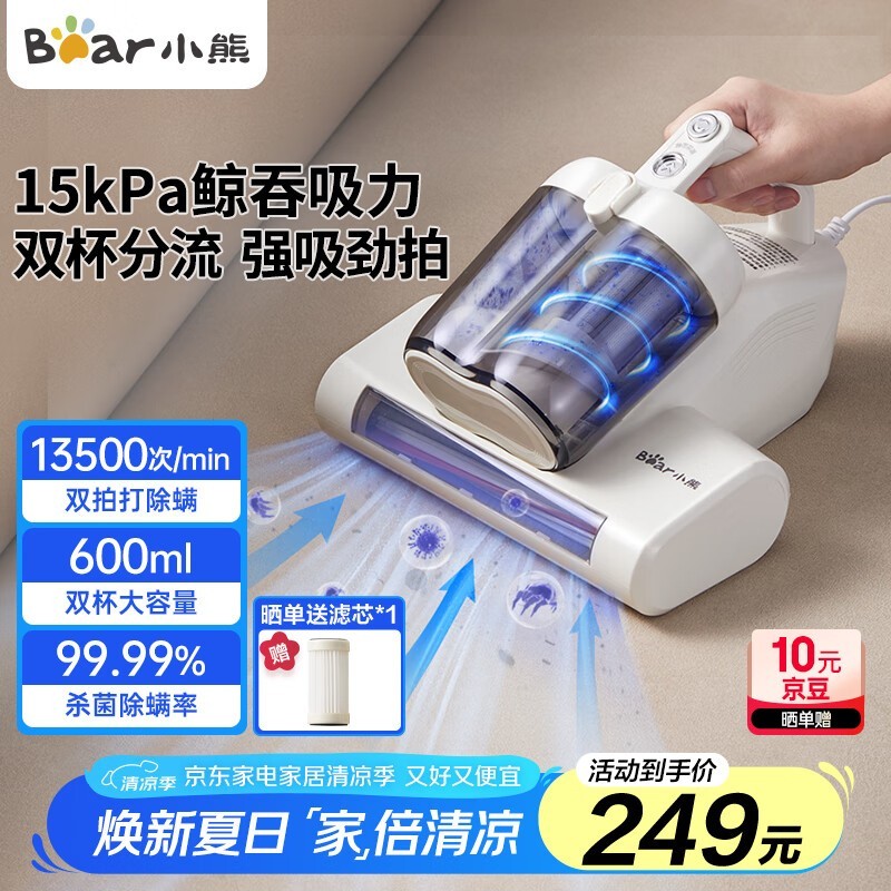 小熊除螨仪双杯尘螨分离家用床上紫外线杀菌超声波除螨机CMY-U05W6