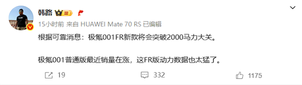 当然了,依托吉利集团,极氪自然不可能认输,近日,多名汽车博主爆料称,全新极氪001 FR的动力输出超过2000马力!
