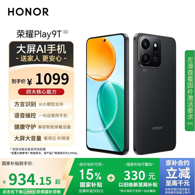 荣耀Play9T 5G手机限时特惠934元