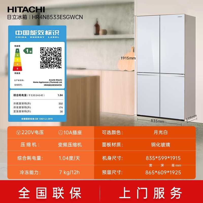 日立506L十字门冰箱优雅月光白限时特惠