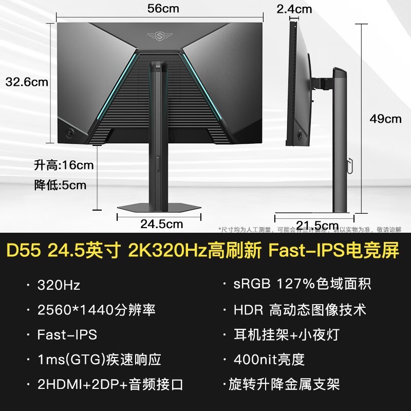 SANC 24.5英寸2K超频320Hz显示器限时8.8折