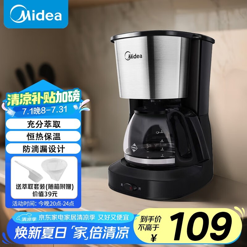 美的KFD101滴漏式咖啡机京东促销仅需92.65元