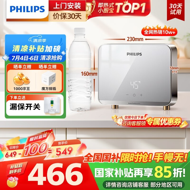 飞利浦即热式小厨宝电热水器限时秒杀289元