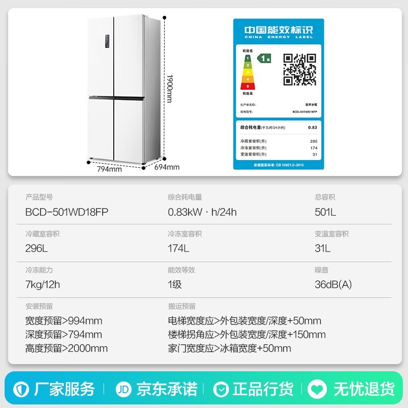 容声蓝光养鲜冰箱BCD-501WD18FP限时特惠2879元