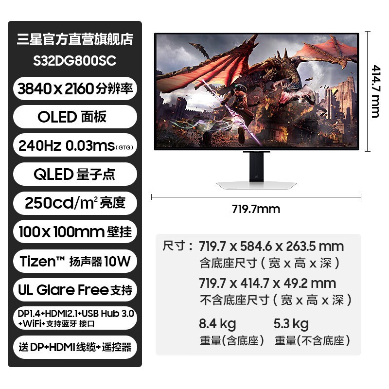 三星玄龙骑士G80SD 32英寸OLED游戏显示器限时特惠