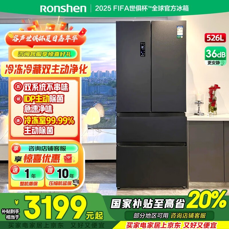 容声526L双净冰箱京东补贴后3199元