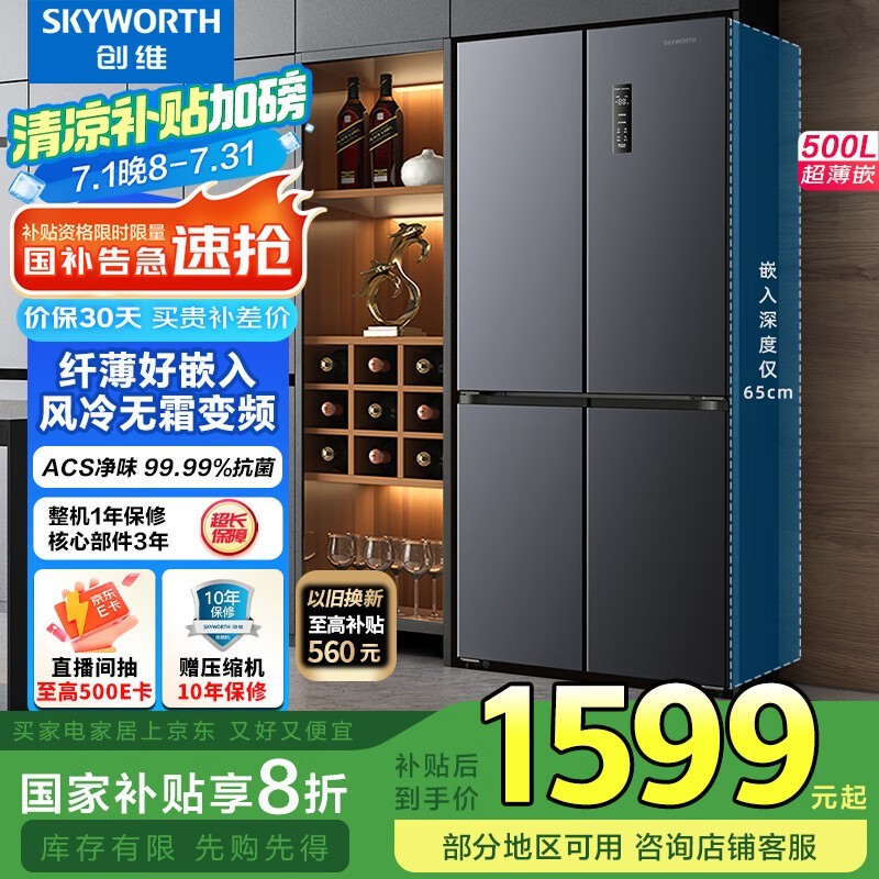 创维光鲜系列500升冰箱京东低至1519元
