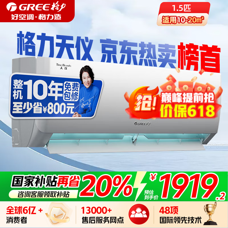 格力空调天仪云佳系列1匹一级能效变频挂机,现价1895元起
