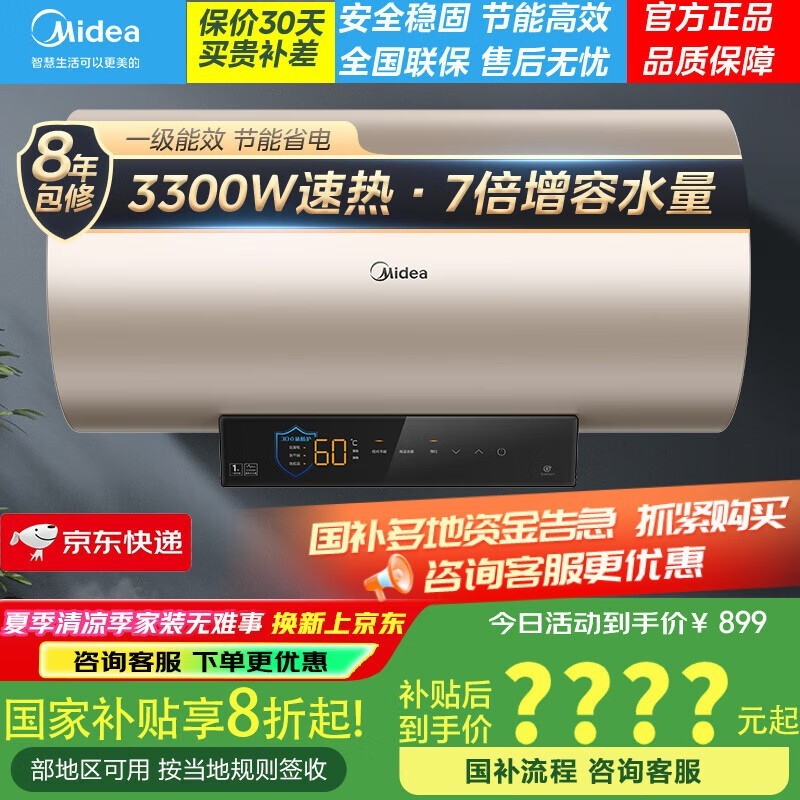 美的电热水器F5033-J7pro(HE)大促:速热节能,多重优惠,到手价649元