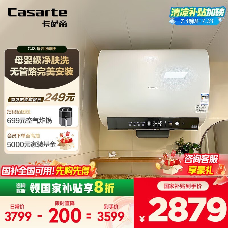 卡萨帝60升电热水器限时特惠,节能高效仅2643元