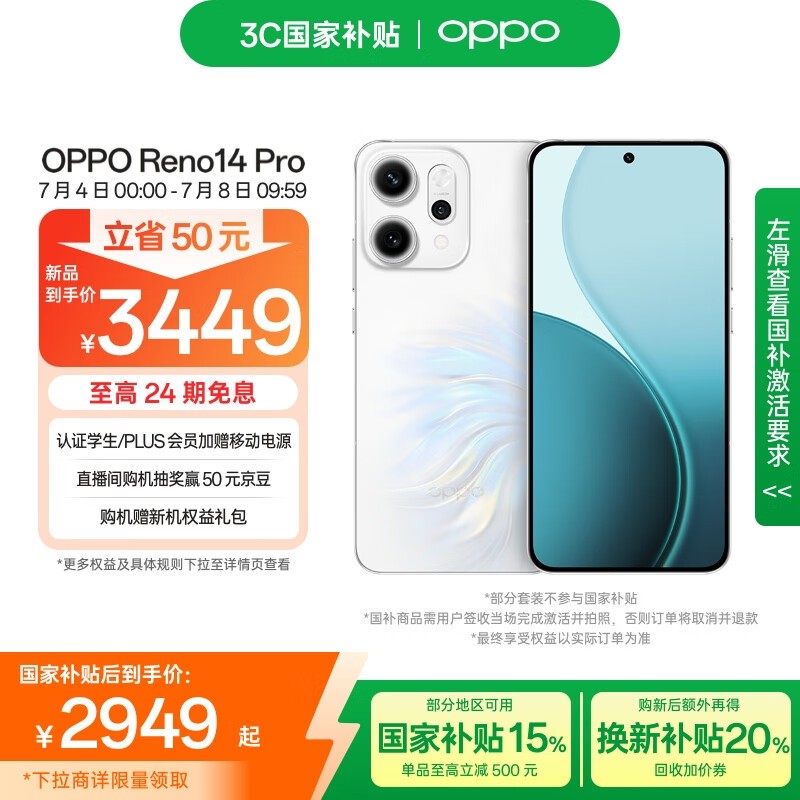OPPO Reno14 Pro 5G手机限时特惠2949元