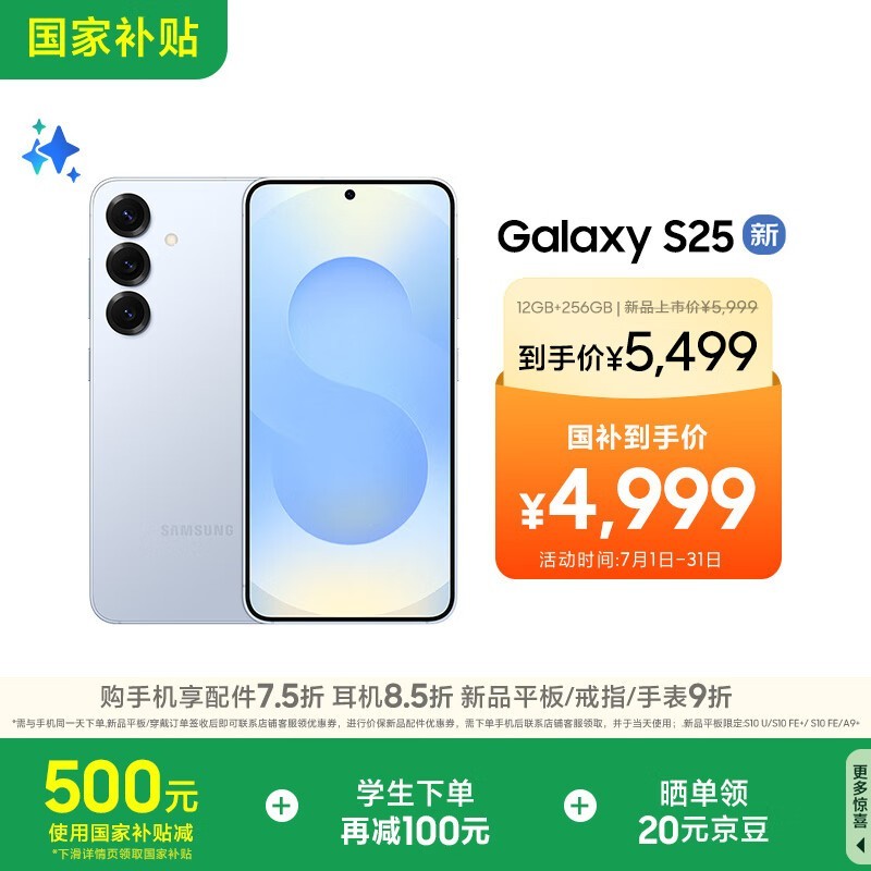 三星Galaxy S25 5G手机冷川蓝限时特惠