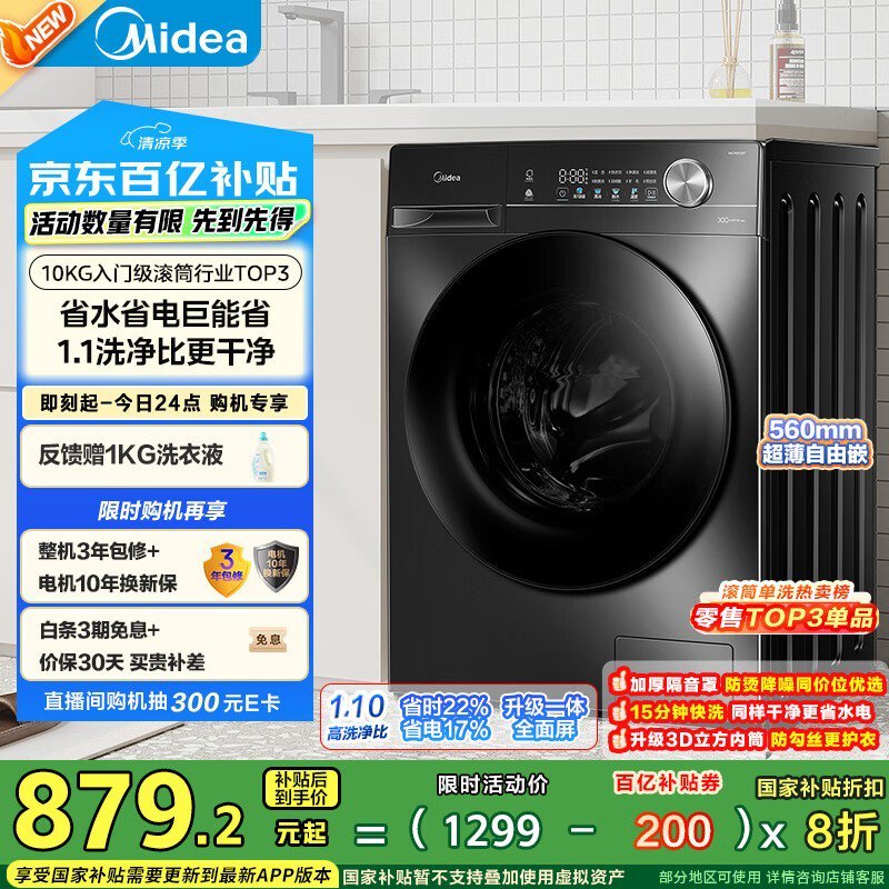 美的MG100V36T 10kg滚筒洗衣机京东超值优惠