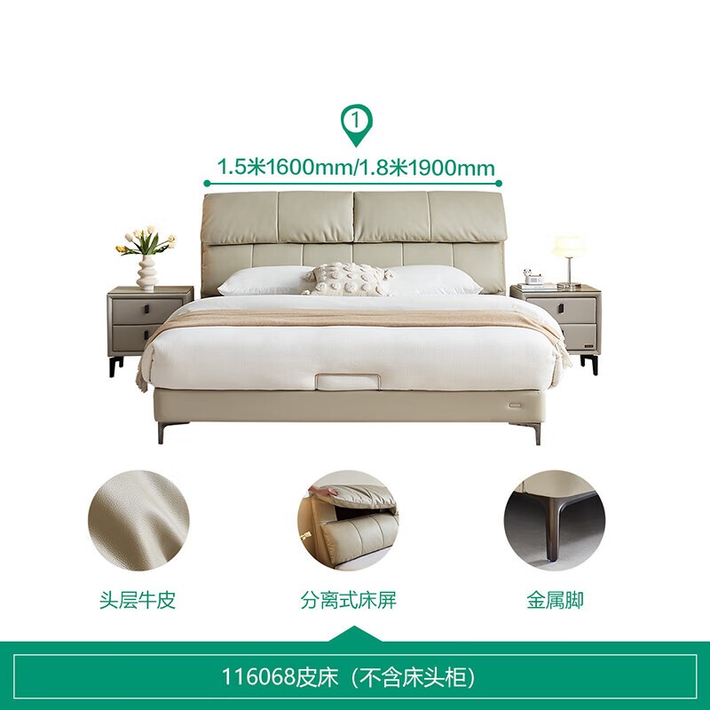 全友家居1.8米×2米真皮软包床超值价