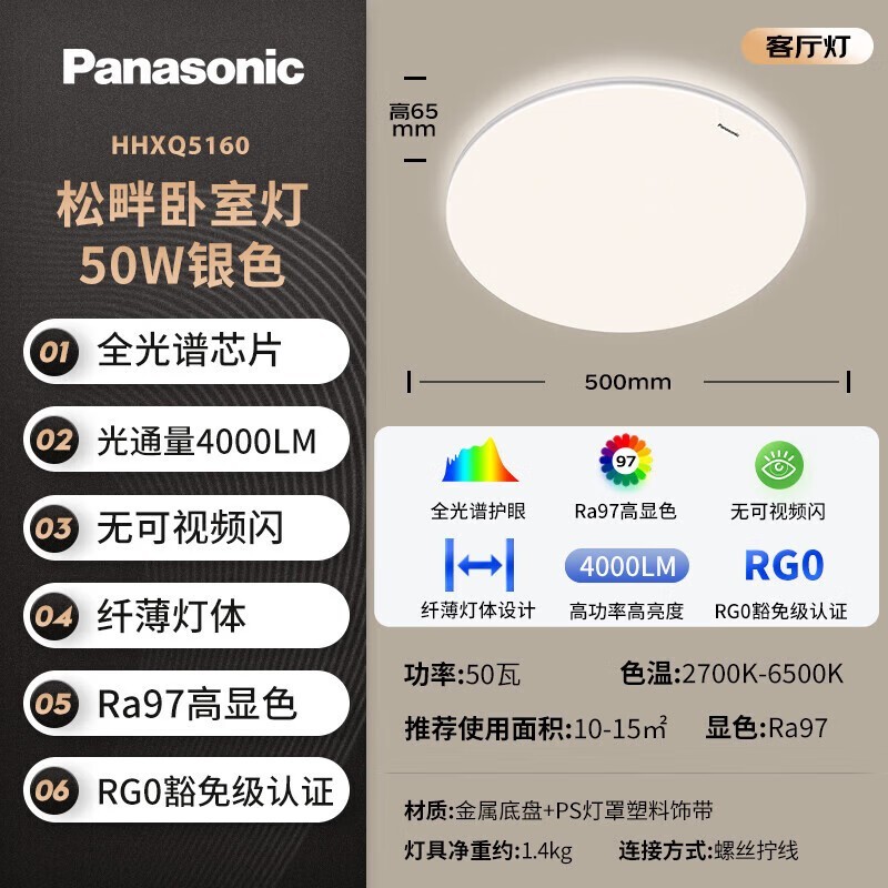 松下吸顶灯卧室灯全光谱护眼LED灯简约款限时特惠