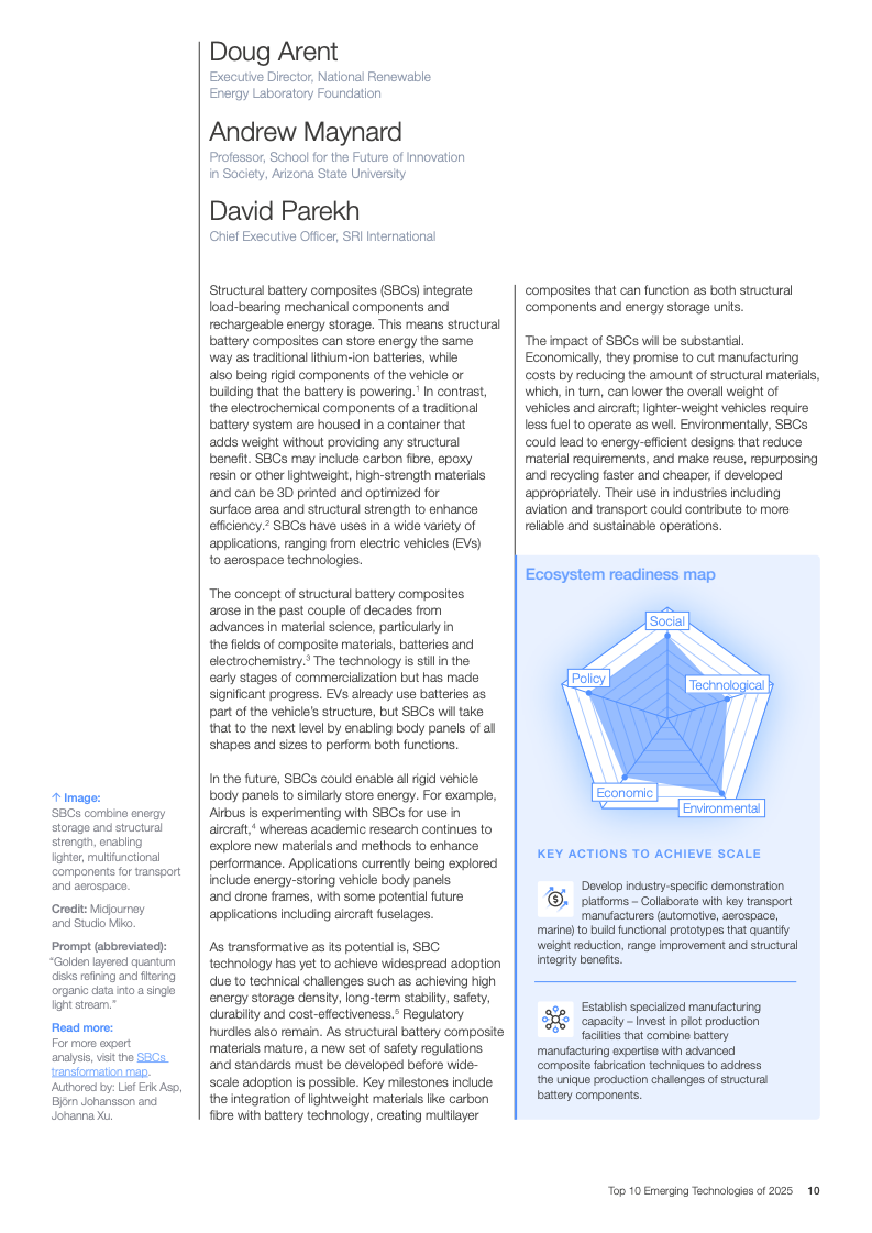 能源与材料领域的融合趋势尤为显著,直接响应了全球电气化与人工智能发展的巨大能源需求。结构电池复合材料旨在提升电动汽车的能效与续航里程,而先进核能技术则为数据中心等高耗能产业提供了可靠的零碳能源方案。