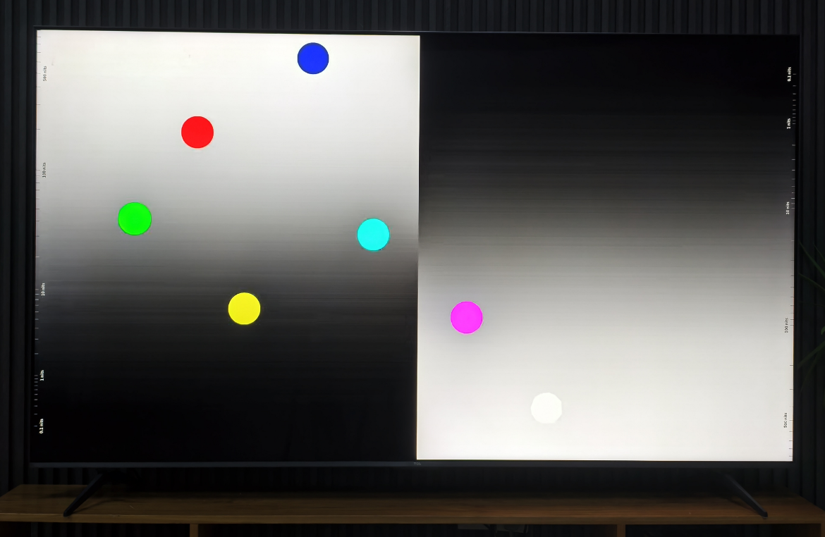 通过我们实测数据显示,这款电视的最高亮度高达2345nit。值得一提的是,TCL这一次在峰值亮度指标上,还提出了绚彩XDR2200nit的技术,让峰值亮度可以更持久的保持高亮,同时配合量子点Pro2025,通过升级版的量子点材料,可以激光更纯净的RGB三色光源,让画面色彩更丰富准确。