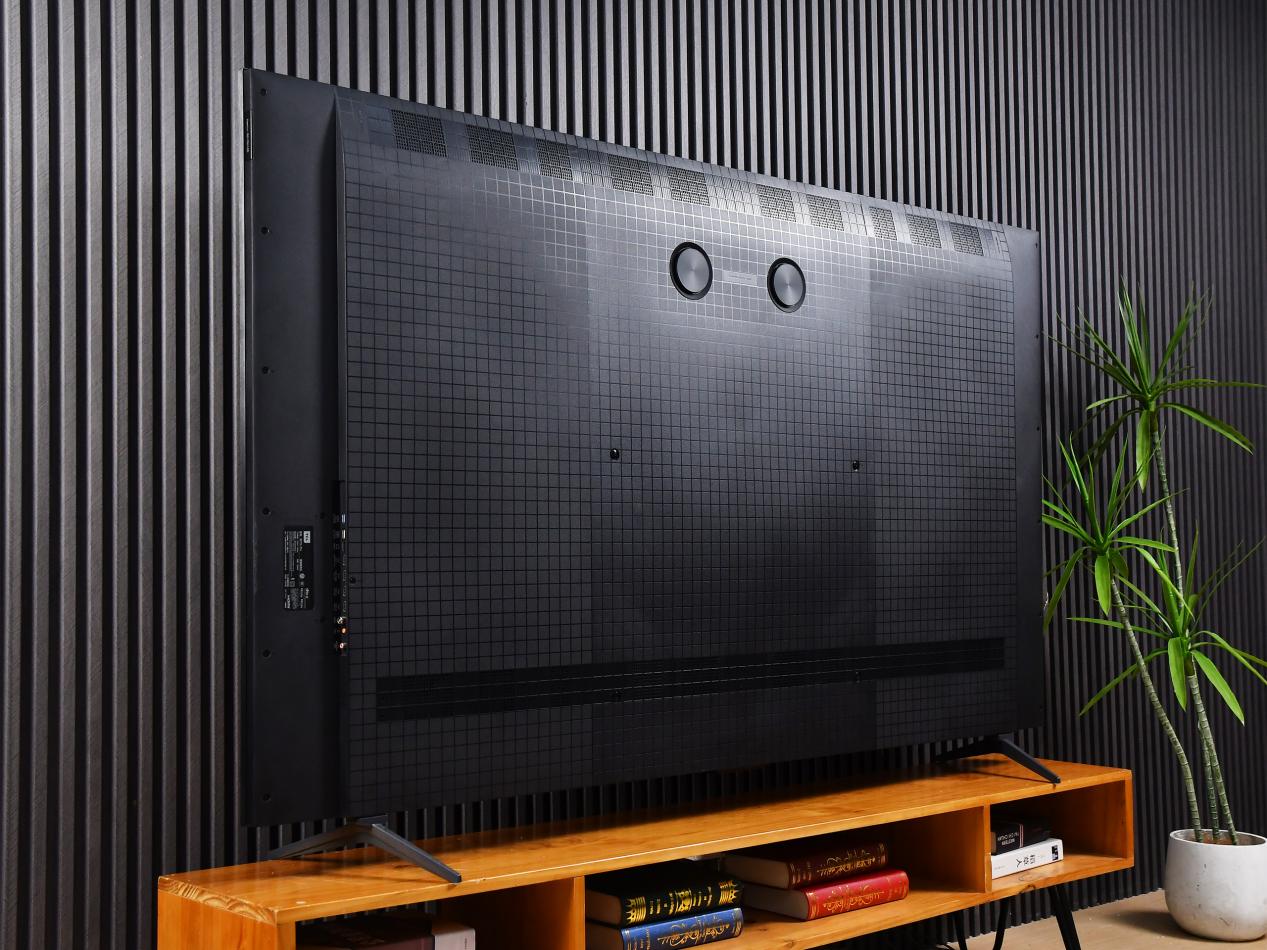 得益于微距OD的设计,TCL T7L Pro的整体厚度<60mm,搭配8mm磁吸超薄挂架,挂墙后与墙面的缝隙可忽略不计。背部的Mini LED星空纹理与星盘重低音设计,将技术元素转化为美学符号,这种“科技即美学”的设计理念,让电视的美不止一面。