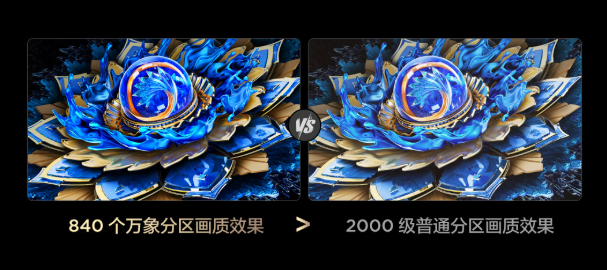 当看到840个万象分区的参数时,不了解万象分区技术的人难免会产生疑问:如今不少Mini LED电视动辄宣称拥有千级分区,单纯以分区数量论优劣是否科学?