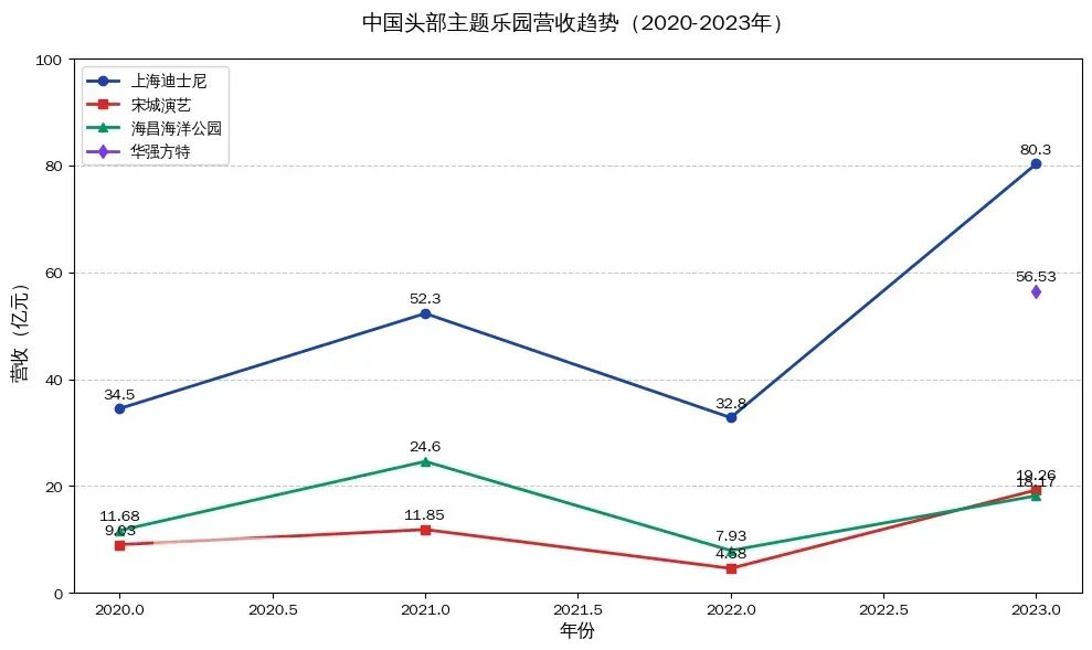中国头部主题乐园营收情况