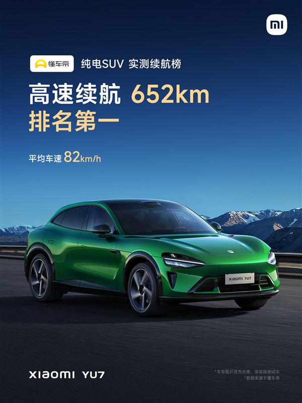 快科技7月7日消息,小米汽车今日发布海报称,三大汽车垂媒实测小米YU7续航,结果均是SUV第一。
