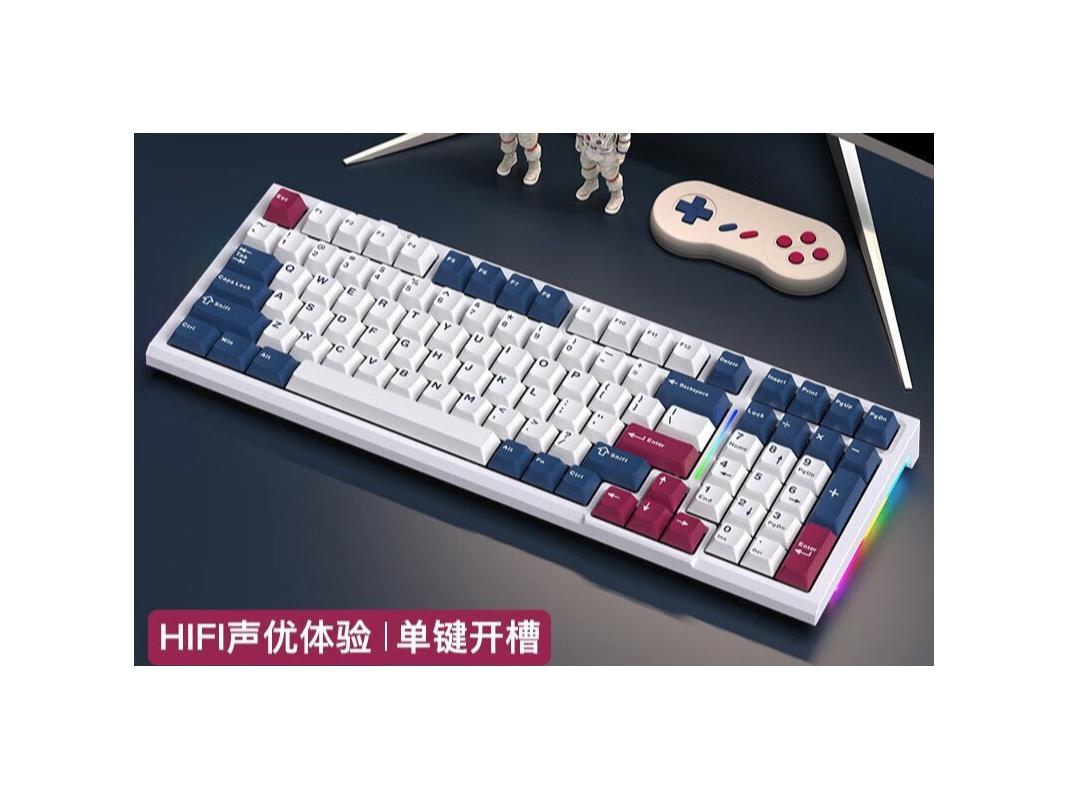 ROYAL KLUDGE RK R98三模机械键盘,烟雨轴V2火蓝电竞办公两用