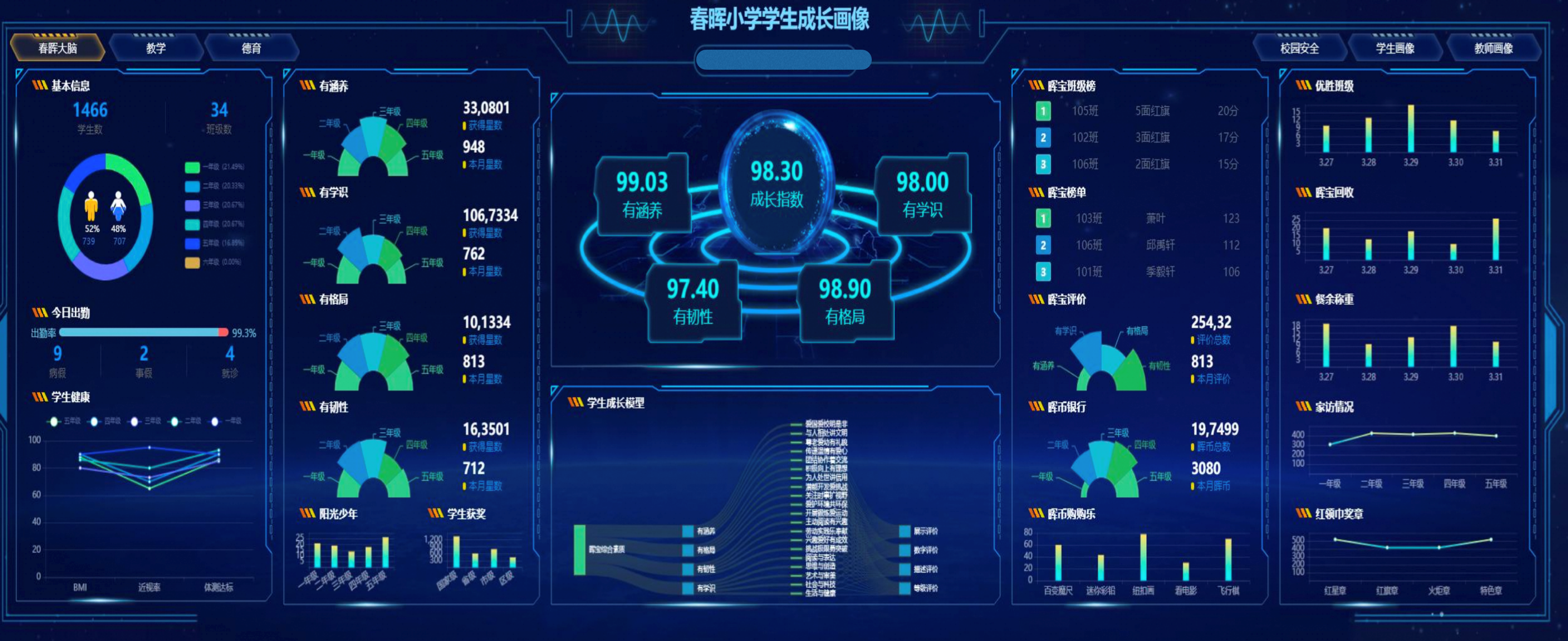 图:学生日常表现和所获成绩荣誉等方面的数字化记录,为学生画像提供数据来源如今的杭州市春晖小学开始了集团化办学之路,杭州市西兴实验小学、杭州市科创小学先后加入了春小学集团。随着管理范围和人数的增加,田冰冰愈发感受到数字化的重要性。