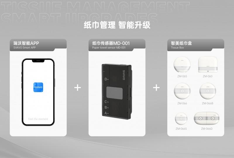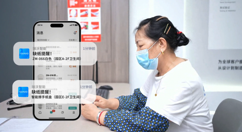 SVAVO瑞沃顺势而为,推出智能纸巾管理技术解决方案,以「纸巾传感器 + 智美纸巾盒 + 瑞沃智能APP」构建完整智慧卫生间新生态闭环,为客户带来可量化、可视化、可预测的运营能力。一个小小的保洁提醒,撬动的不只是一次纸张补充,更是一整套服务体系的效率跃迁。