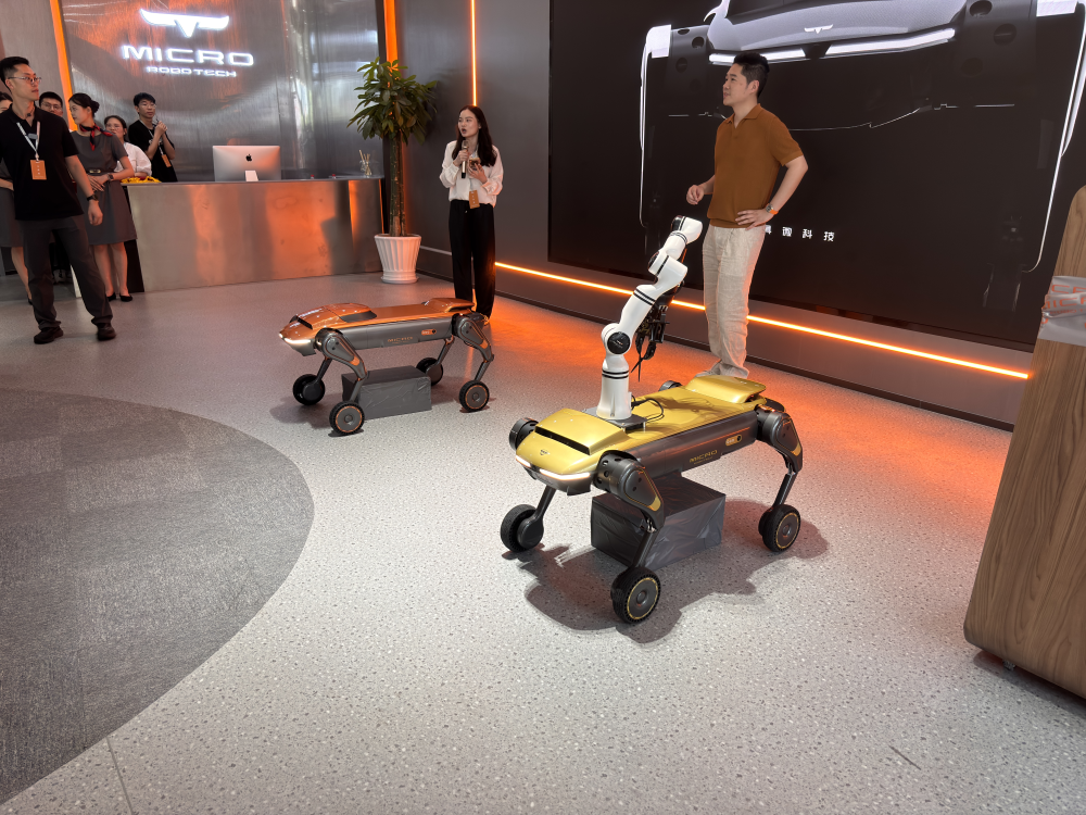 7月5日,杭州具微科技有限公司(简称“具微”)宣布,其全球首家具身智能4S店在杭州钱塘区正式开业,同时旗下首款轮式四足机器人“MOVENEW T1”实体首次面向公众亮相。此次活动汇聚了政府领导、行业专家、企业合作伙伴(阿里巴巴、海康威视、三星、oppo等)及媒体代表(央视新闻等)等逾100人,也预示着四足机器人从专业领域向消费级的全面渗透。
