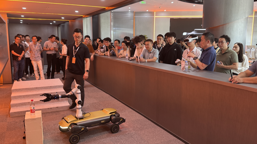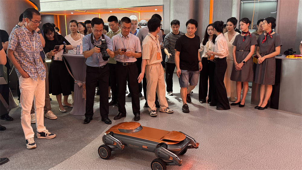 参观环节,具微科技团队向政府领导、行业专家、企业合作伙伴详细讲解了机器人的核心组件,并结合登山徒步、露营探险、应急救援、物流运输等实际应用案例,深入剖析了具微机器人如何为不同行业客户提供高性能、定制化的智能移动解决方案。通过模块化设计和即插即用的配件生态,产品能够灵活适配各类细分场景,满足多样化需求,让在场嘉宾对具微科技的技术实力与创新理念有了更直观的认识。