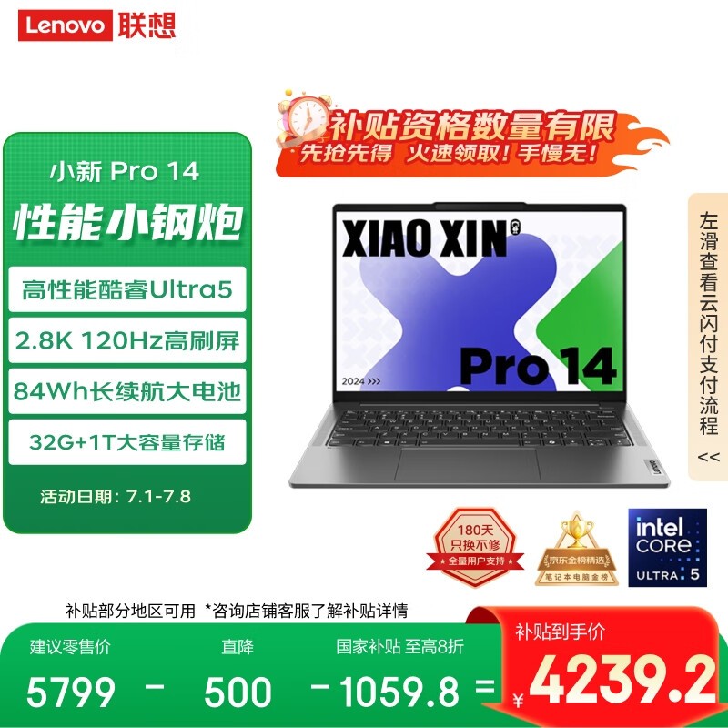 联想小新Pro14 2024款限时特惠4231元