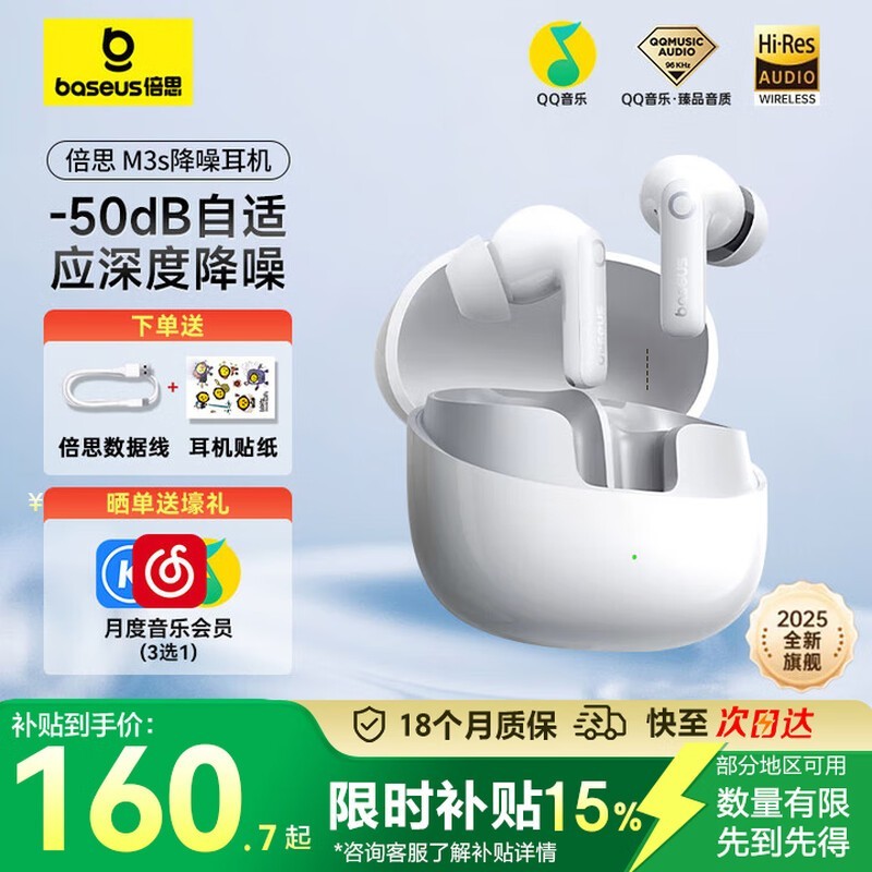 倍思 M3S 无线蓝牙耳机限时优惠137元