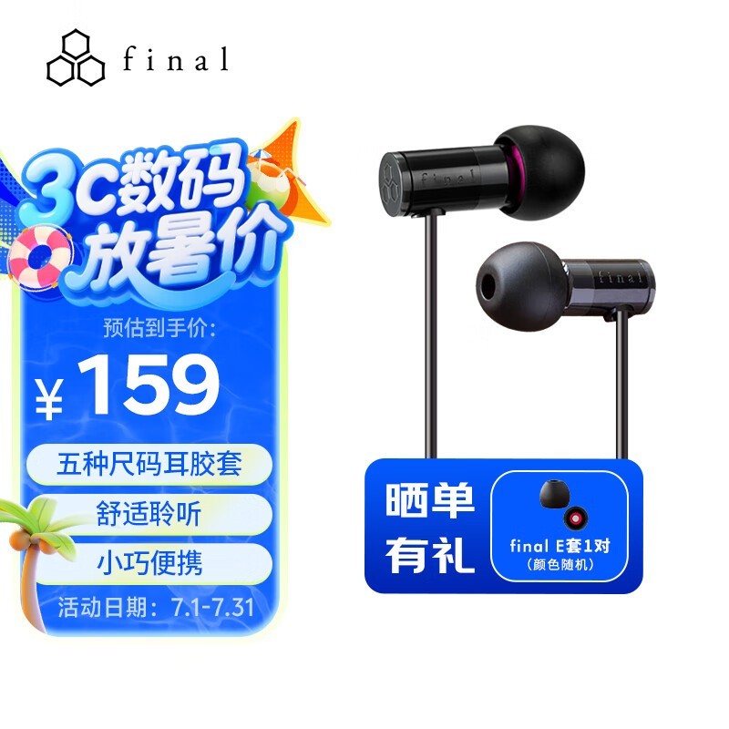 Final Audio E1000动圈耳机限时优惠价159元
