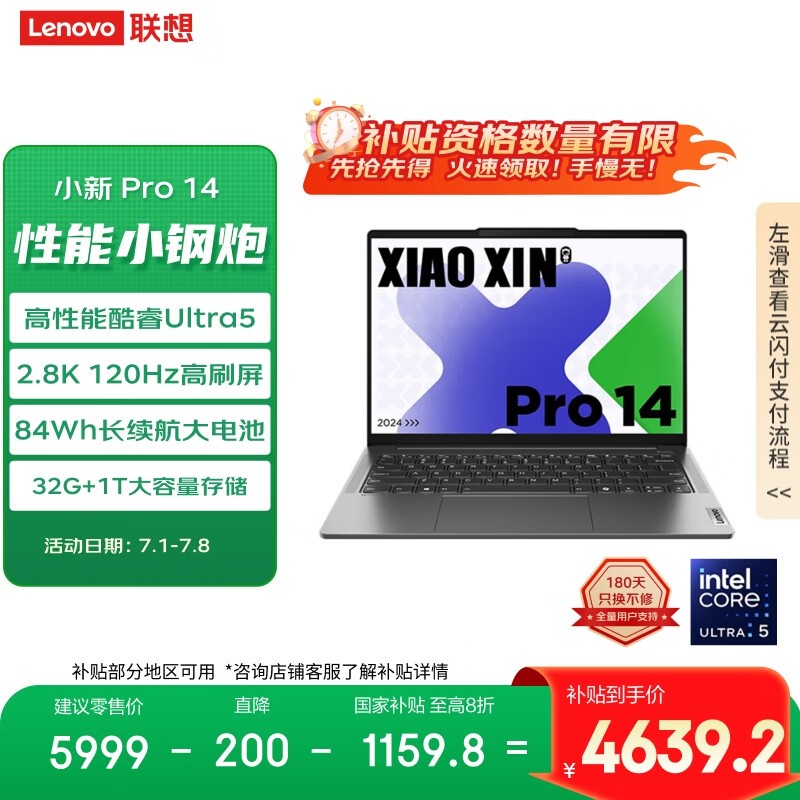 联想小新Pro14 2024款Ultra版京东优惠价4639元