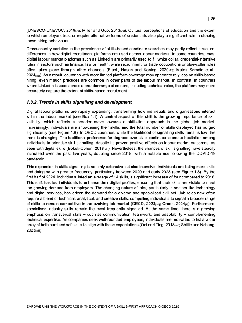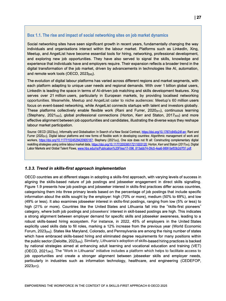 通过美国劳动力市场数字平台数据分析。 报告量化了技能信号对就业结果的影响。 数据表明,技能可见性是提升就业机会的关键。 为理解技能如何转化为市场价值提供实证。