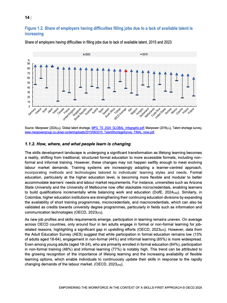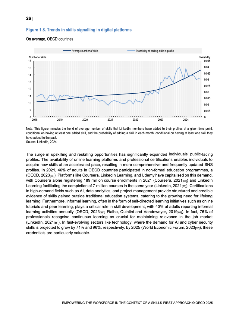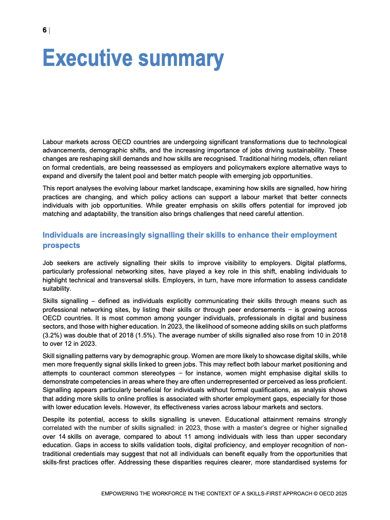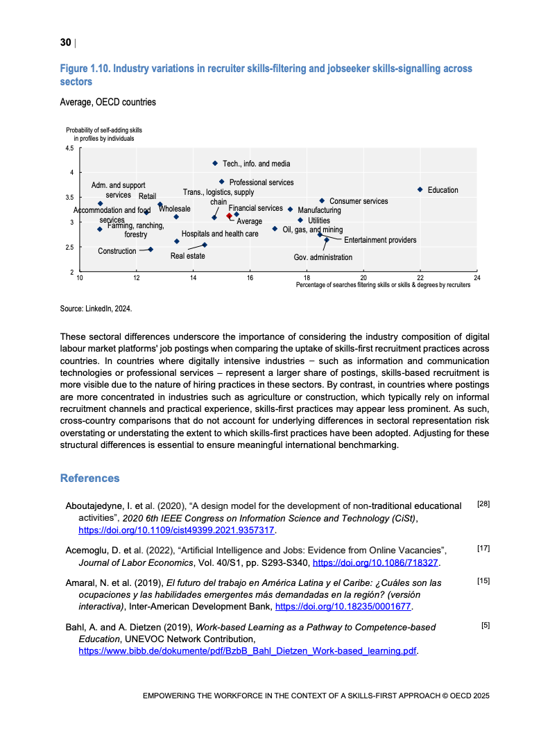 技能信号在变动劳动力市场中重要性日益增加。 报告映射了经合组织国家技能信号分布格局。 并研究其在数字和绿色转型中的发展。 这些变化影响着市场对特定技能的动态需求。