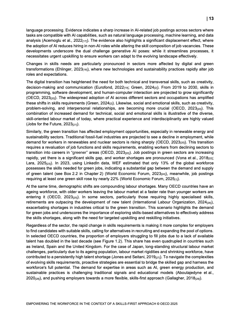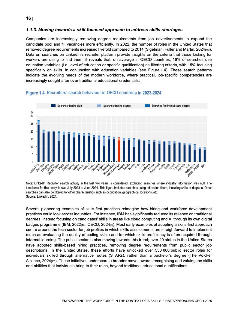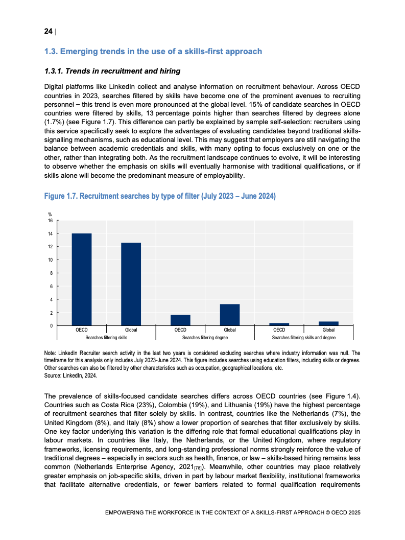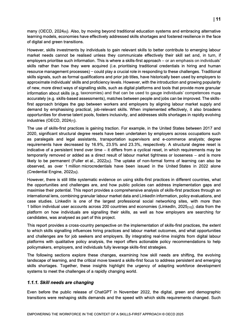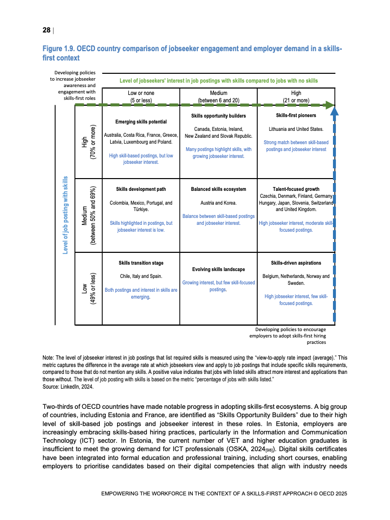 技能信号在变动劳动力市场中重要性日益增加。 报告映射了经合组织国家技能信号分布格局。 并研究其在数字和绿色转型中的发展。 这些变化影响着市场对特定技能的动态需求。