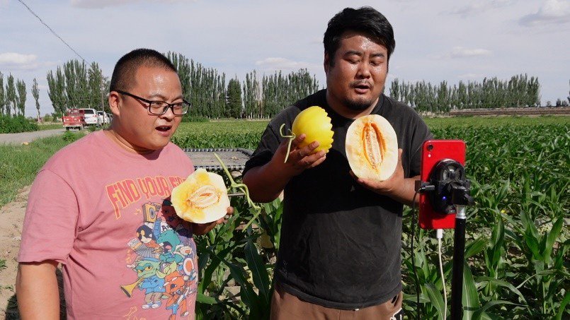 民勤干旱、少雨,日照充足,所以当地种植的蜜瓜甘甜多汁,远近闻名。此次媒体探访活动正值7月初,民勤县的20万亩蜜瓜陆续成熟上市,一时间当地成了甜蜜的海洋。远近客商纷纷赶来民勤收购蜜瓜,主播们也积极行动起来,走进乡镇农村、田间地头,通过手机和5G网络向自己的粉丝们介绍民勤蜜瓜的生长环境、风味特色。